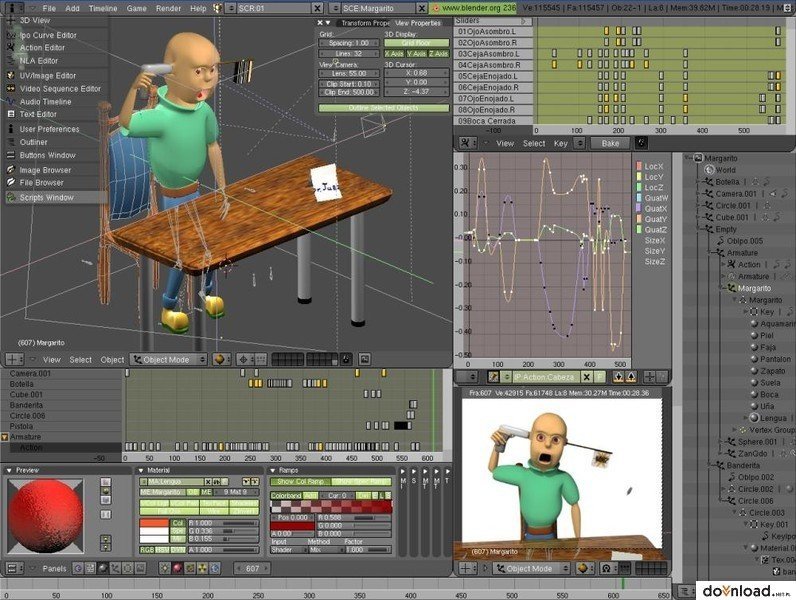 Blender is the open source 3D creation suite. It supports the entirety of the 3D pipeline—modeling, rigging, animation, simulation, rendering, compositing and motion tracking, even video editing and game asset creation. Advanced users employ Blender’s API for Python scripting to customize the application and write specialized tools; often these are included in Blender’s future releases. Blender is well suited to individuals and small studios who benefit from its unified pipeline and responsive development process. Examples from many Blender-based projects are available in the showcase.